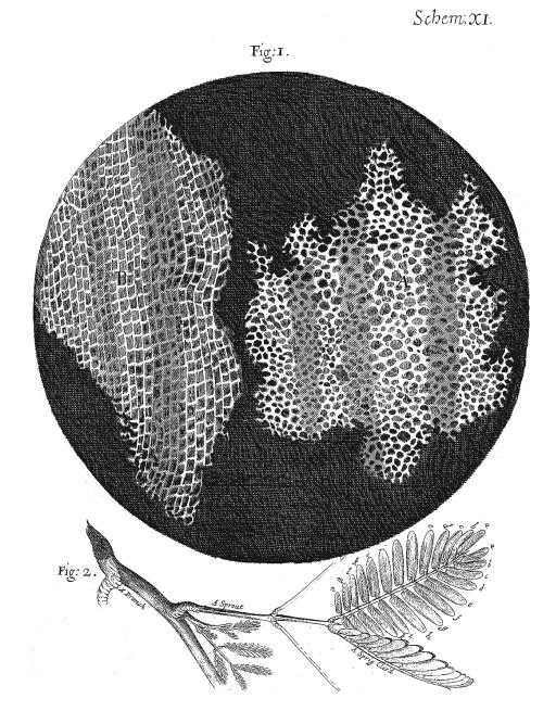 Я мог отчетливо видеть, что вся она продырявленная и пористая, очень похожая на соты, но только эти поры были неровными… Эти поры, или клетки… на самом деле были первыми микроскопическими порами, которые я увидел1.