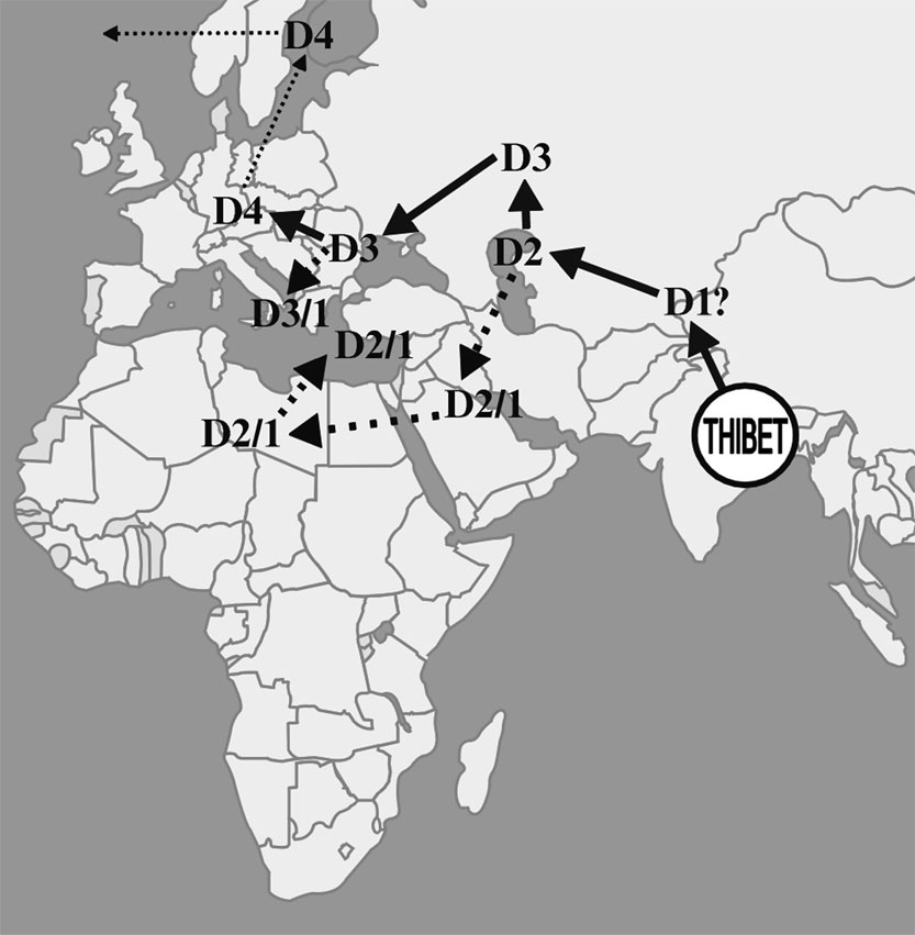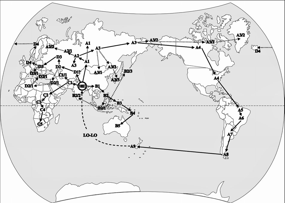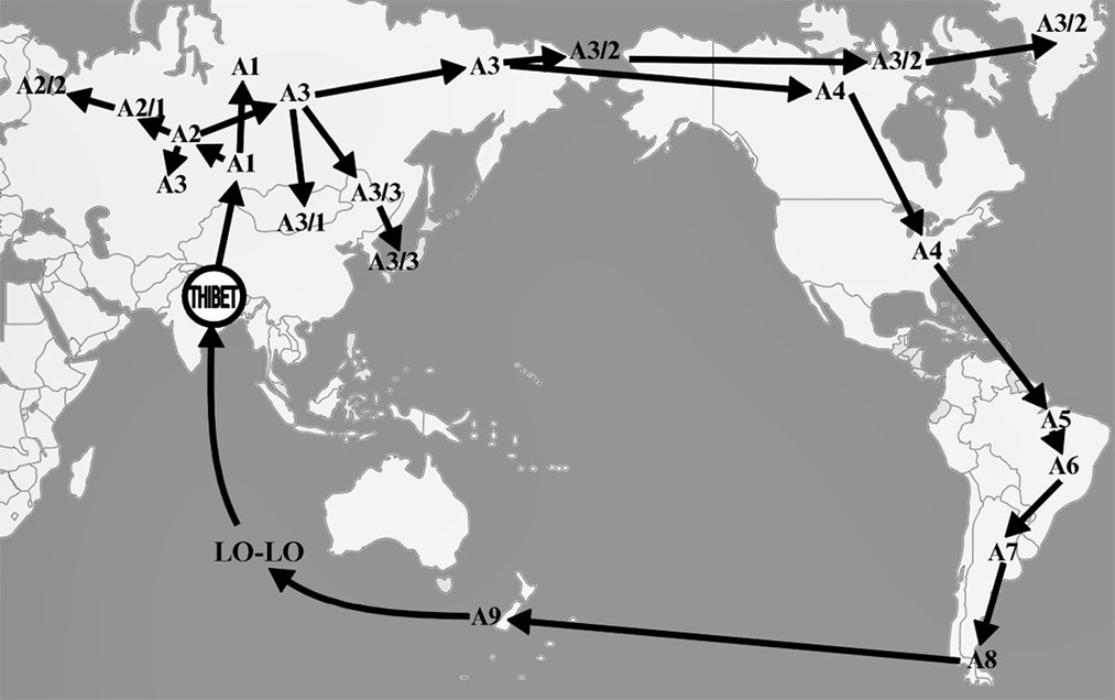 КАРТА МИГРАЦИИ ЧЕЛОВЕЧЕСТВА ИЗ ТИБЕТА
