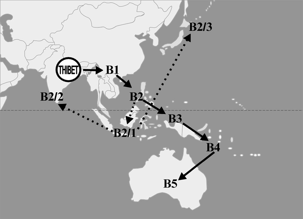Распространение на южные острова (Филиппины, Индонезия) привело к появлению папуасской расы, которая породила азиатско-пигмейскую расу в пределах той же Индонезии.