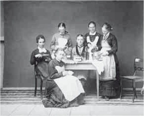 Lauter tüchtige Hausfrauen: Die Schwestern Roth aus Lenzburg, später Elise Ringier-Roth und Emilia Louise Tobler-Roth, Trogen, waren mit Marie befreundet. Im Album für Arnold gibt es immer wieder knappe Hinweise auf Begegnungen. Marie, zweite von links, sitzt im Vordergrund.