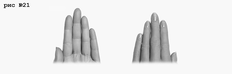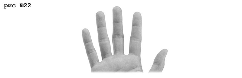 Тот же вывод делается, когда все пальцы находятся на одной линии, а указательный – ниже остальных.