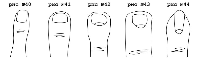 Слишком узкие (рисунок № 44) ногти, как и очень широкие, свидетельствуют о легкой возбудимости своего хозяина.