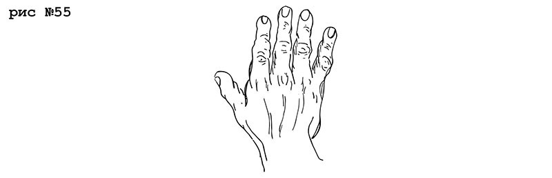 Как видно из рисунка, такая ладонь у запястья широкая и сужается к основанию пальцев. Но бывает и наоборот, когда лопатообразная рука у основания пальцев шире, чем у запястья.