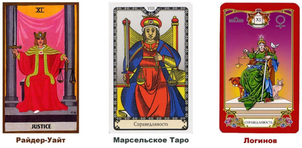 Примечание. В древних колодах Таро под номером восемь идет карта «Правосудие» (в этом можно убедиться на примере Марсельской колоды). Позднее Уайт поменял нумерацию карт «Справедливость» и «Сила». Таким образом, карта «Правосудие» получила номер одиннадцать, а карта «Сила» – номер восемь. (Так появилась новая версия Таро, которой успешно пользуются и по сей день).