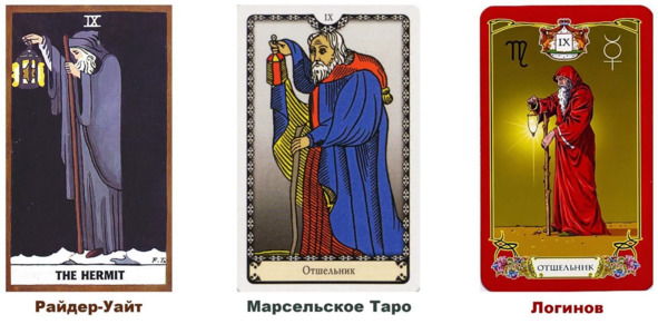 На карте изображен бородатый старик, одетый в простую, без украшений одежду. Он медленно бредет по пустыне, опираясь на посох. В руке монах несет фонарь, освещая себе путь. Странник – это образ исканий и потребности в свете (фонарь в его руке символизирует стремление к мудрости) для достижения цели. У старика нет ничего, кроме того, что он несет с собой, его не влекут богатства мира.