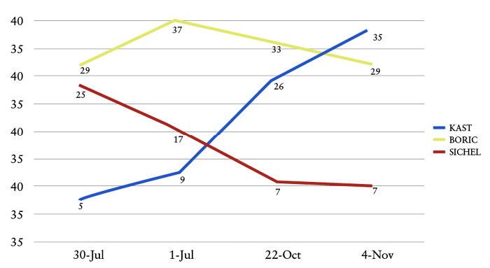 En el tramo final de la campaña presidencial se hizo cada vez más patente cómo el candidato de la derecha aumentaba en su apoyo popular, pasando de los últimos lugares a disputar la primera mayoría con el hasta entonces líder indiscutido de las encuestas: el diputado Gabriel Boric.