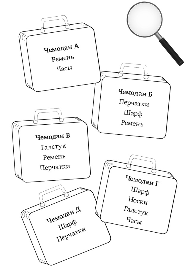 Сможете ли вы на основе их показаний определить, в каком чемодане чьи вещи? Если получится, одежда в оставшемся чемодане должна принадлежать вору и ее можно конфисковать для проведения анализа ДНК.