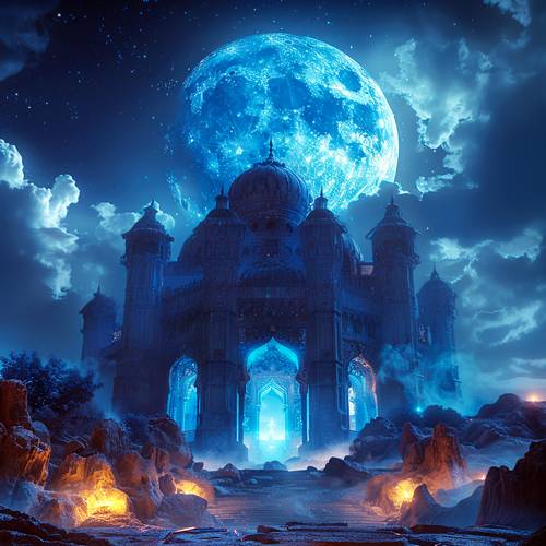 Мы вышли из экипажа, и я замерла, поражённая красотой храма. Вроде не тот момент, чтобы застывать от восхищения, но я никогда в жизни не видела ничего подобного. На каменистом диком холме прямо в центре города возвышалось величественное здание, над которым поднималась пронзительно-голубая, невероятно огромная луна. Её лучи насквозь пронизывали весь храм, заставляя его сиять мистическим лазоревым светом.