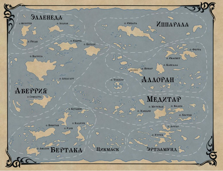 «А дальше гайроны размножились и снялись с места. Замок стал для них слишком тесным, и они нашли подходящий необитаемый остров, заселили его и сделали неприступным для людей. В зверином обличии гайроны с лёгкостью добывали жемчуг и редкие кораллы, в человеческой форме торговали с людьми. Уже через сто лет заселённых гайронами островов стало три. А затем людям пришлось начать считаться с молодой расой. С каждым поколением гайроны становились умнее и сильнее магически. А четыре тысячи лет назад случилась большая межвидовая война между гайронством и человечеством. Победу одержали мы. Людям пришлось подвинуться и подчиниться, мы запретили рабство и установили равные права для гайронов и людей. Так наш вид утвердился в нашем мире, Урму́нде. С тех пор много воды утекло, Аливетта, и теперь гайроны правят большинством стран. Мы сильнее, одарённее магически и живём дольше, чем люди. Вот так раса, выведенная в качестве слуг, стала править своими господами».