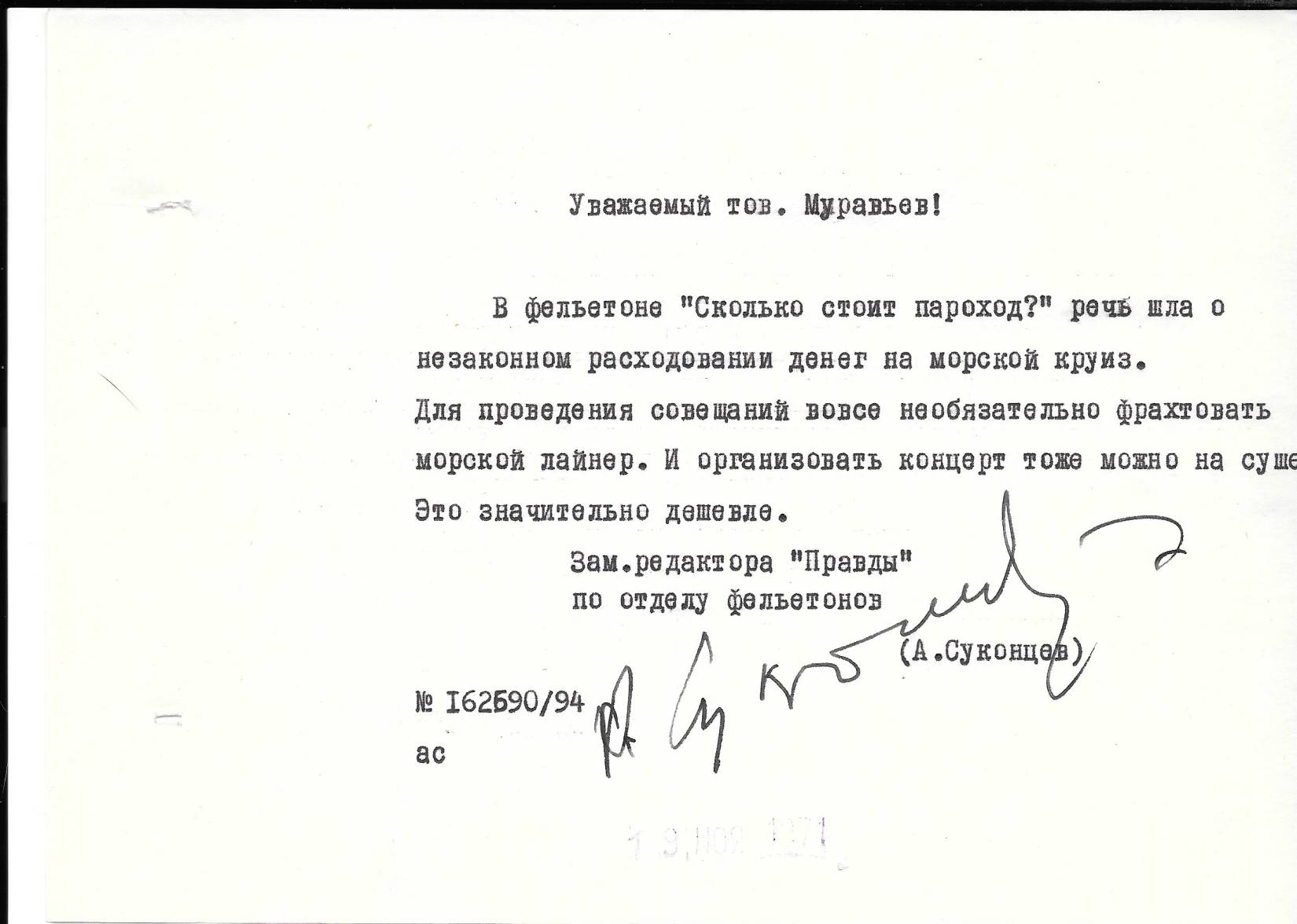 Ведь человек, который был на теплоходе, не мог написать такое. Повторяю, я не знаю, сколько стоит пароход. Но я знаю, сколько стоит боль, причиненная такими фельетонами!