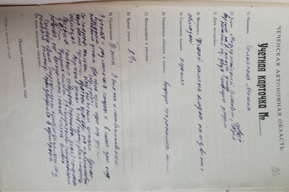 с. Икильчи – Е5 62—45, 42—45. Боевая башня в селении с пирамидальной ступенчатой кровлей и машикулями. Источник: А. В. Мачинский. Дневник Чеченского отряда Сев. Кавк. Экспедиции 1939 г.