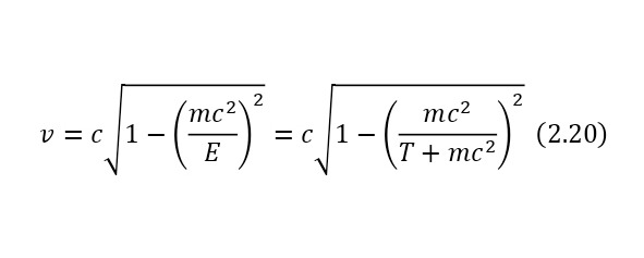 Скорость же частицы выводимая из формул полной энергии (2.17) выглядит следующим образом (2.20).