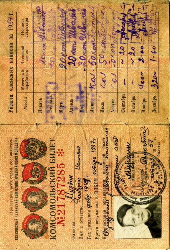 В первом комсомольском документе две ошибки: во-первых, указали год рождения 1942-й, во-вторых, год приема указли не 1956 год.