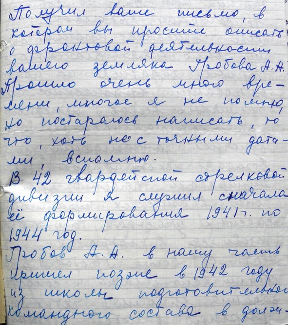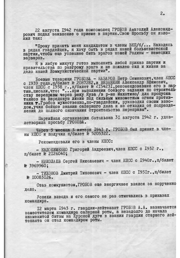 «Я хорошо помню Анатолия Александровича Гробова. Помню, потому что это был волевой, умелый, скромный и исполнительный командир. Помню и потому, что ему командование доверяло самые ответственные задания.