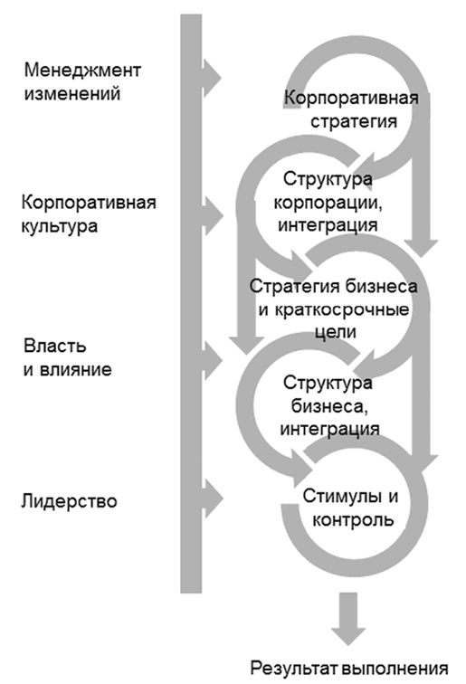 Управление изменениями. Преобразования в организациях всегда сложная и ответственная деятельность, а внедрение стратегии, практически всегда связано с изменениями. Исполнение стратегии может потребовать изменений в должностных обязанностях, организационной структуре, методах координации, людях, стимулах или средствах контроля. Эти изменения могут иметь жизненно важное значение для успеха. Но производственная практика показывает, что люди часто сопротивляются изменениям. Они могут явно или не явно попытаться саботировать изменения и привести к сбою усилий, связанных с выполнением стратегии. Таким образом, эффективное управление изменениями, очевидно, является важным компонентом в реализации стратегии. Внедрение стратегии представляет собой один из самых сложных примеров менеджмента изменений, поскольку часто затрагивает все стороны деятельности компании.