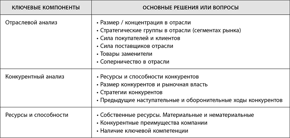 На уровне бизнеса абсолютно необходимо, чтобы разработчики стратегии провели углубленный анализ следующего: