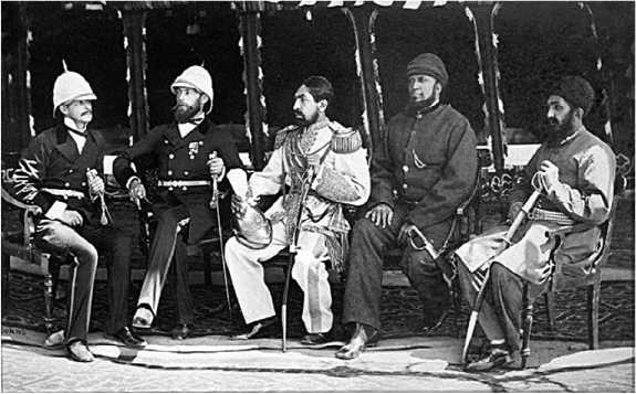 Эмир Афганистана Мухаммед Якуб-хан с британскими офицерами. Май 1879 года
