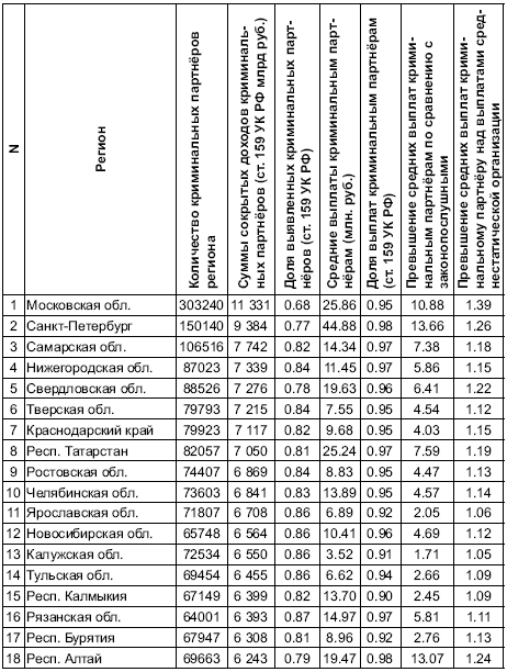 Из 239 383 клиентов не федеральных государственных компаний 16 795 оказались фирмами«помойками», через которые напрямую были отмыты 46 млрд руб. Из оставшихся 222 588 компаний 25% (50 009 организаций) ничего не украли из полученных ими 8,2 млрд руб. А 75% остальных (172 579), получив от государственных не федеральных компаний 632 млрд руб., отмыли свыше 7,3 трлн руб.