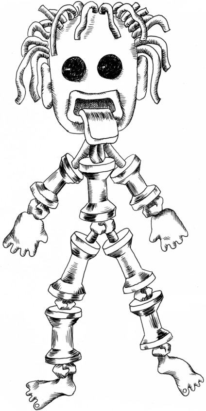 Взять семь катушек от ниток, от тех, которые еще выпускались в древние времена на деревянных катушках, и кусочек резиновой материи (как поговаривала сама Прасковья Куличевна, а по-современному это простая резинка для трусов), нанизать на ту материю пустые катушки, да так, чтобы тело и руки будущей Кузькиной Матери состояли из одной катушки, а вот ноги нам длинные нужны, тут по две катушки на ногу пойдет…