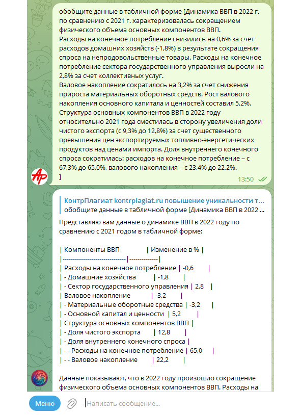 Укажите, в какой форме должен быть представлен ответ. ChatGPT обладает уникальной способностью превращать ответы в таблицы, списки, графики, блок-схемы, фрагменты кода и т. д. Например, «разделите текст на абзацы», «текст должен легко читаться»; «оформите его как маркированные пункты/нумерованный список» и т. д. Если в запросе привести пример: «| Колонка 1 | Колонка 2 | Колонка 3 |» – то результат будет отформатирован как таблица, рис. 9.