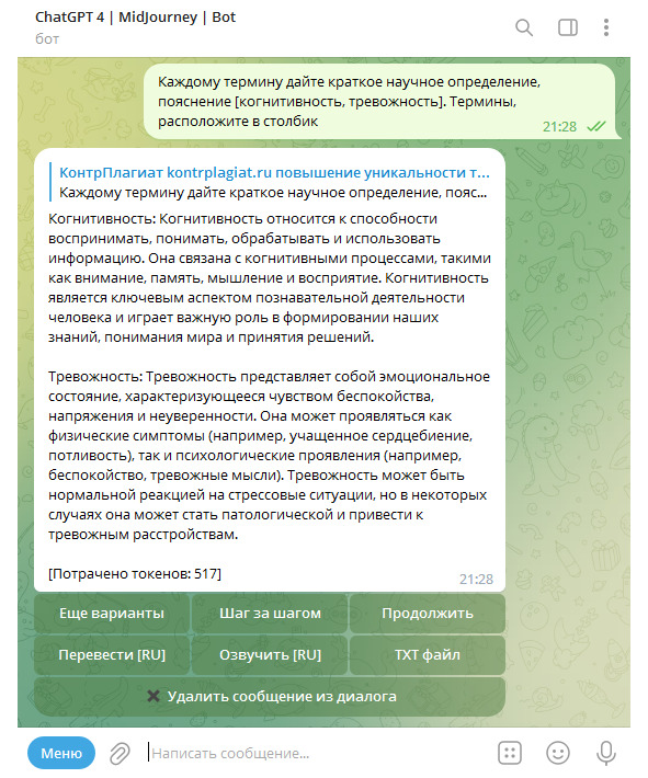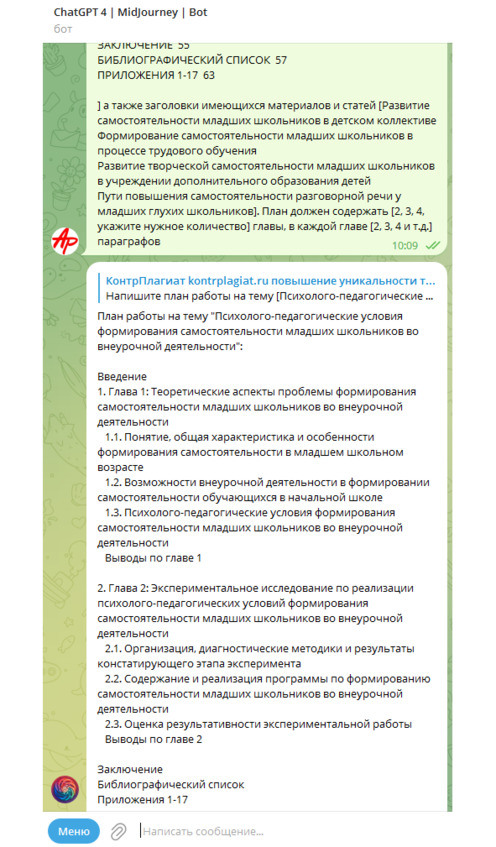 Рисунок 16 – Интерфейс ChatGPT 4 | MidJourney | Bot