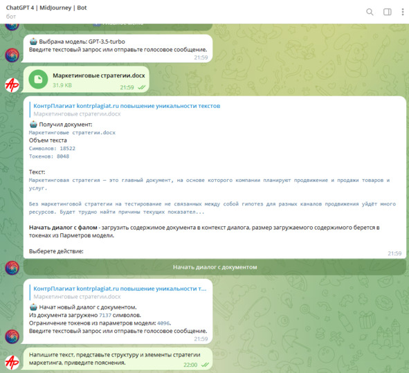 В примере использован GPT-3.5, который содержит ограничения, поэтому из документа загружено 7137 символов, что снижает объем контекста. От данной проблемы свободна версия GPT-3.5-turbo 16 k, рис. 75.