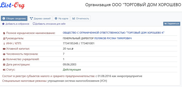 Состоит в реестре субъектов малого и среднего предпринимательства: с 01.08.2016 как микропредприятие