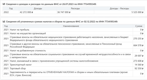 Компания имеет следующие регистрационные реквизиты: ИНН 7734195349, КПП 773401001, ОКПО 18789732, ОГРН 1037734015494. Коды ОКФС и ОКОГУ указывают на то, что предприятие относится к категории «Частная собственность» и является организацией, учрежденной юридическими лицами или гражданами, или юридическими лицами и гражданами совместно. ОКОПФ указывает на то, что компания относится к категории «Общества с ограниченной ответственностью». Коды ОКТМО и ОКАТО указывают на местоположение компании в районе Хорошево-Мневники, Северо-Западный, г. Москва.