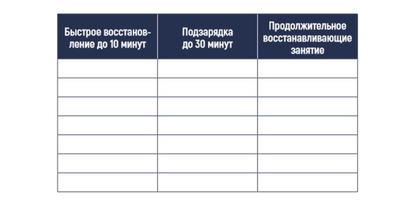 Например, вас заряжает силами физическая активность. Но в офисе вы не можете обратиться к этому ресурсу – он требует особой формы одежды и времени. Подумайте, как вы можете преобразовать это занятие – например, ввести короткую разминку в обеденный перерыв или пешую прогулку за кофе. Оцените, насколько это для вас работает. Подмечайте, какие именно факторы вам важны – конкретный зал, продолжительность, вид тренировки или общение с тренером.