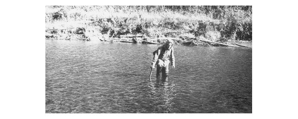 – Перейдем вброд, – сказал Володя. Он снял сапоги, засучил брюки и первым полез в воду. Подняв над головой в одной руке сапоги, в другой ружье, он переходил реку. Брюки он все-таки подмочил и Надежда Николаевна сказала, что она, пожалуй, снимет свои лыжные штаны, чем потом ходить в мокрых.