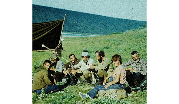 Впереди шли Володя и Любовь Андреевна. Володя шел с ружьем и больше занимался охотой. Любовь Андреевна вела отряд. Несмотря на свой возраст, ей было около пятидесяти, она шла по молодому легко, не выказывая ни малейших признаков утомления. За ней следовал Валя Жаворонков. Со свойственным своему возрасту романтизмом он считает себя центральной фигурой, пытается говорить «солидно», но срывается с принятого тона, суетится, хочет одновременно всем услужить и из-за этого зачастую забывает свои основные обязанности. Особенно заметно его усердие по отношению к Надежде Николаевне. Он поминутно оглядывается на нее и несмотря на то, что сам перегружен «через верх», уже два раза предлагал взять ее рюкзак. Надежда Николаевна благожелательно улыбается, но рюкзак не отдает. Векшин долгое время идет за ней, наблюдая ее легкий пружинистый шаг. Она спортсменка, альпинистка и вообще, отвлекаясь от мыслей по геологии, он вдруг признает, что она женщина интересная.