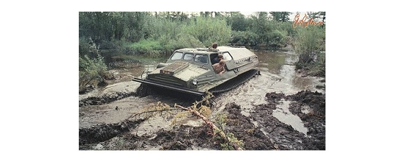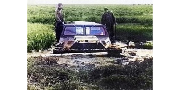 Подъехав к какой-то небольшой неглубокой речушке с чистой прозрачной водой, мы перемахнули через нее и устремились вслед уже скрывшемуся 71-му. Легко взлетев на противоположный берег наш ГТТ ринулся вдогонку и… сел. Сел так, что я даже испугался… Месиво по самую дверцу… Гусеницы где-то внизу и просто прокручиваются… Можно сказать: – «сели по уши»… Мы вылезли через верхние люки на крышу и стали озираться и чесать в затылках.