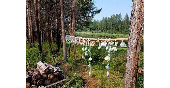 Досадный, вернее нелепый случай произошел у меня во время одной из таких поездок. Обычно в готовый шурф я вставлял лесину корнями вверх, чтобы место шурфа на местности было хорошо видно издалека. А тут я решил сделать веху как положено по инструкции: затесать комель вехи, вырубив в нем затес, напоминающий букву «Г», где пишутся данные по шурфу – № и год, когда сделана проходка.