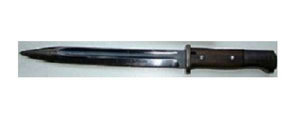 Один штык-нож, видимо от немецкой винтовки Маузер, я выкупил за пару бутылок у своего коллеги-приятеля. Нож был какой-то непрезентабельный что ли, тупой, с немного укороченным лезвием и без накладок на ручке.