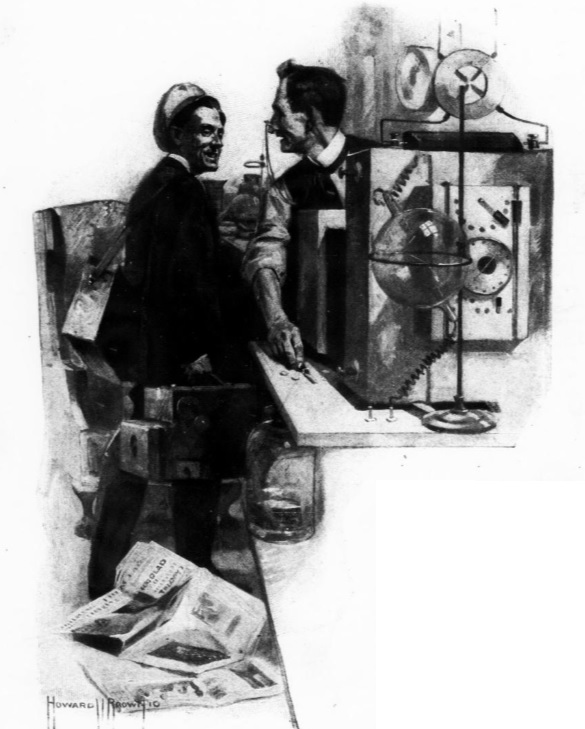 Я вернулся на квартиру в час дня, как и было условлено; по дороге мне встретились отряды полиции, уводившие лиц, заподозренных в занятиях наукой. Среди них я узнал профессора Рунтона, эксперта-электрика и химика соседа по дому на углу нашей улицы. Когда я дошел до самой улицы, то увидел, что она вся усеяна солдатами, а по домам ходят отряды. Офицер остановил меня и осмотрел фотоаппарат. Он позвал сержанта саперов.
