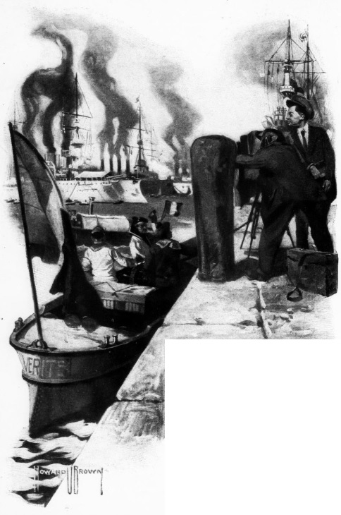 В Олдершоте у них не возникло никаких подозрений относительно фотографов, и нас приняли весьма радушно, как участников исторического события. Оттуда мы поспешили в Портсмут, где собрался большой флот, занявший всю гавань; около пятидесяти британских военных кораблей и примерно столько же кораблей других стран, в основном французских и немецких, которые пришли оказать помощь в борьбе с аннигилятором – двумя людьми с какими-то аппаратами! Фотографические снимки были очень маленькими, но дело было не в размере, как говорил Харви.