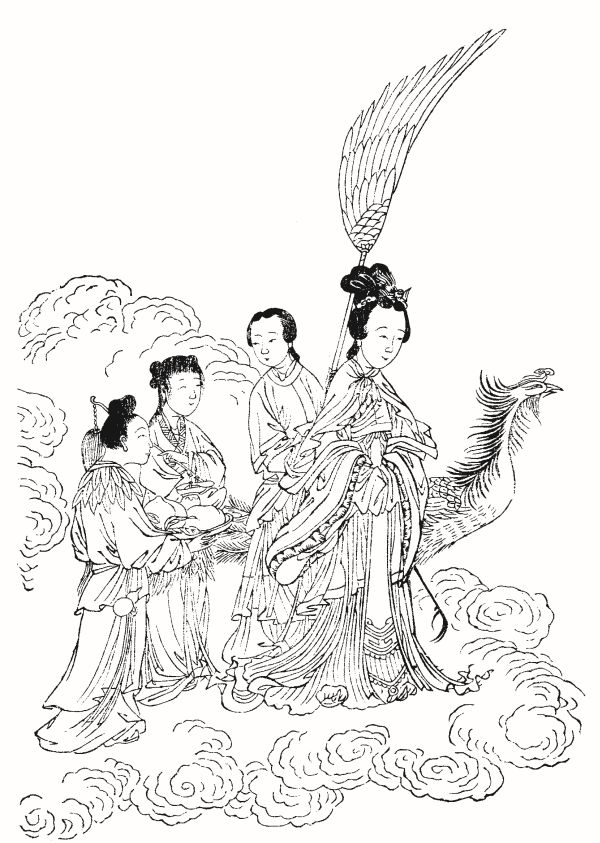 Между тем Небесная дева обучила войско юэского князя и, ни с кем не простившись, покинула княжество Юэ. Окутанная легким туманом, она шла по старой проезжей дороге, как вдруг услышала, что ее кто-то окликнул.