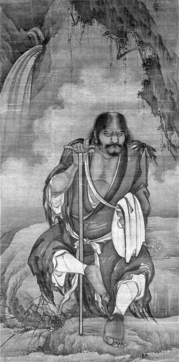 Ничего не поделаешь – что случилось, то случилось! Добравшись кое-как до противоположного берега, хэшан разделся и стал выжимать воду из мокрой одежды. Оставшуюся сандалию с правой ноги пришлось выбросить. Босой, продрогший, в сырой одежде, он направился к рощице, неподалеку от которой стоял дом. Подойдя к дому, он увидел бродячего монаха – поджав под себя ноги, тот сидел у запертых ворот под навесом на куче травы. Перед монахом лежала раскрытая сутра, в правой руке он держал дубинку с окованными железом концами.