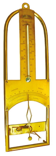 Гигрометр XVIII века измеряет влажность с помощью волоса.