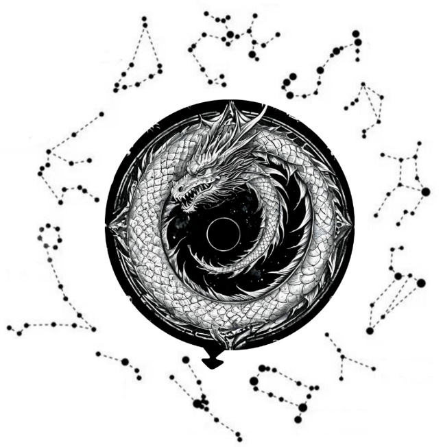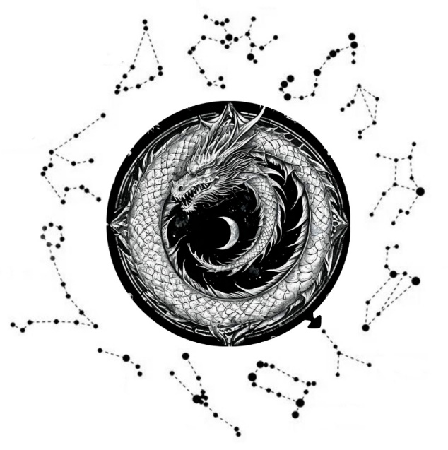 Рэй молча показал мне обратную сторону снимка. Там были нарисованы созвездия, похожие на циферблат, а в середине дракон с луной, но я особо не придала этому значение.