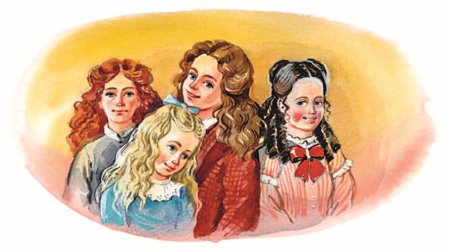 Маргарет – то есть Мег, старшей из сестёр, – уже исполнилось шестнадцать. Она очень хороша – пухленькая и беленькая, большеглазая, с прекрасными светло-каштановыми волосами, с нежным ртом и очень белыми руками, которыми она даже немножко гордится. Пятнадцатилетняя Джо отличается высоким ростом и худобой. Она смугла и напоминает жеребёнка: кажется, что она никогда толком не знает, куда девать свои длинные ноги и руки, которые ей вечно мешают. Линия рта у неё решительная, нос – смешной, а серые глаза смотрят пронзительно и, как представляется, видят абсолютно всё, и взгляд их бывает то яростным, то весёлым, а то задумчивым. Единственной красою Джо надо назвать длинные, густые каштановые волосы, но она всегда небрежно заталкивает их в сетку, чтобы не мешали и никому не попадались на глаза. Джо сутулится, кисти рук и ступни у неё крупные, одежда на ней свободно болтается, и выглядит бедняжка неловкой, неуклюжей, как обычно выглядит девушка, слишком быстро превращающаяся во взрослую женщину и весьма этим недовольная. Элизабет, то есть Бет, как все её называют, – розовощёкая, гладко причёсанная, ясноглазая девочка тринадцати лет, застенчивая, с тихим голоском и умиротворенным выражением лица, почти никогда не нарушаемым. Отец называл Бет «маленькая Мисс Спокойствие», и это имя отлично ей подходило, потому что девочка, казалось, живёт в своём собственном, полном счастья мирке, из которого решается выйти навстречу только тем, кому верит, тем, кого любит. Эми, хотя и самая младшая из сестёр, считается в семье – во всяком случае, по её собственному мнению – особой самой важной. Настоящая снегурочка – голубоглазая, с золотистыми волосами, волнами спадающими ей на плечи, бледнокожая и изящная, она всегда держит себя как юная леди, не забывающая о хороших манерах.