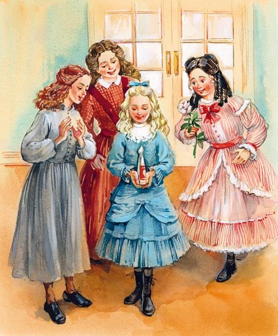 – А я рада, что моя книжка – голубая! – заявила Эми, и тут обе комнаты погрузились в тишину: слышался лишь шелест осторожно переворачиваемых страниц, пока лучи зимнего солнца тихонько подкрадывались к девочкам, чтобы, поздравляя с Рождеством, коснуться их светлых головок и серьёзных лиц.