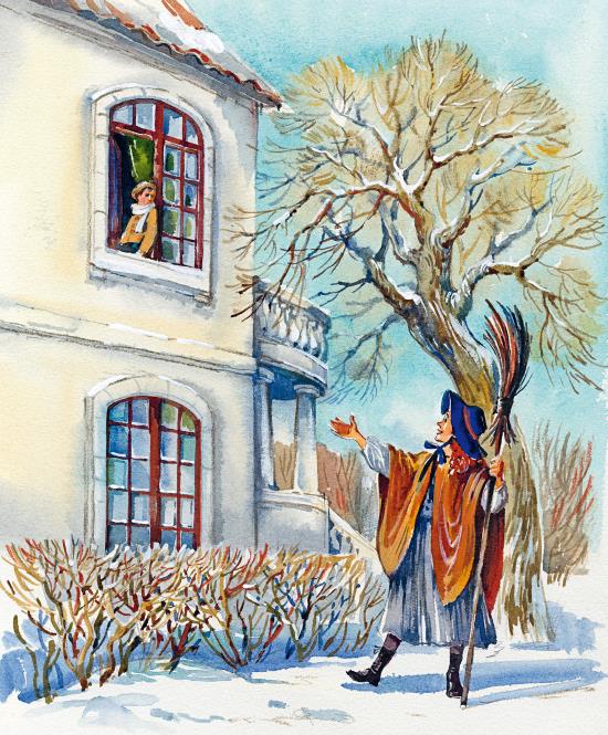 Горсть рыхлого снега взлетела вверх, и голова тотчас повернулась к окну лицом, мигом утратившим своё унылое выражение. Большие глаза загорелись, губы раскрылись в улыбке. Джо кивнула ему, засмеялась и, размахивая в воздухе метлой, крикнула: