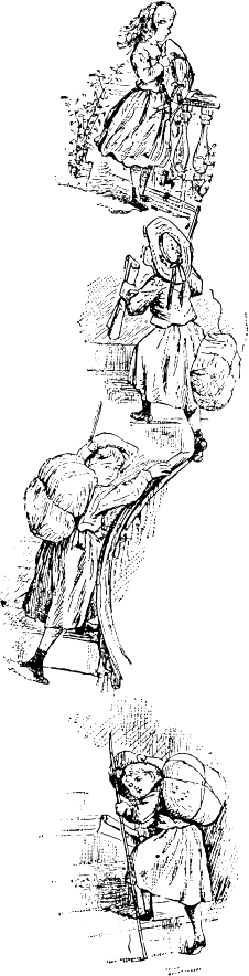 – Ваши котомки? – отозвалась мать. – Но ведь вы только что признались, какие недостатки вас угнетают. Вот это и есть ваши котомки, ваша ноша. С ними и отправляйтесь в «Странствия пилигрима». А Бет молчит. Видно, её ничто не обременяет.