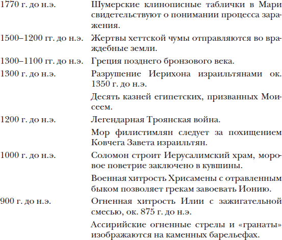Бактериологическое оружие? Химические препараты? Большинство из нас считают, что данные чудовища появились совсем недавно. Разумеется, превращение патогенов, ядов и химикатов в эффективное средство ведения войны требует современных научных представлений об эпидемиологии, биологии и химии, а также совершенных систем транспортировки. Кроме того, разве воины древнего мира не исполнены чести, доблести и умений?