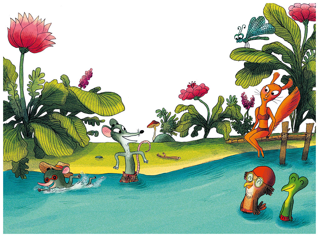 – Ха-ха-ха! Пожалуйста, прекрати, Мышонок! Она холоднющая! Я уже почти пожалел, что одолжил тебе плавки, – хохотал Крот.