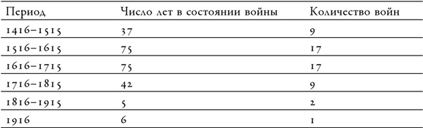 Интересна и еще одна взаимосвязанная тенденция. Отдельные игроки, некогда активно участвовавшие в системе европейских войн, пытались полностью из нее выйти – этот процесс я называю голландизацией. Этот термин проистекает из действий Нидерландов – богатого, централизованного и даже доминирующего государства, которое в свое время вносило подобающую лепту в военные конфликты. Однако в XVIII веке Нидерланды стали выходить из этой системы, чтобы сосредоточиться на коммерческих и колониальных начинаниях. Хотя время от времени Голландия втягивалась в более масштабные конфликты, инициированные другими государствами, в целом на протяжении двух с половиной столетий страна стремилась избегать любых международных войн в Европе. Нечто подобное произошло в Скандинавии, откуда некогда приходили самые знаменитые в истории воины-хищники. При решении внутренних проблем скандинавские народы могли вести гражданские войны десятилетиями – например, в Норвегии, по сути, непрерывная гражданская война шла с 1130 по 1227 год. В таблице 2 представлены данные о последующих войнах, которые вели страны Скандинавии: на протяжении большей части промежутка с 1415 по 1816 год они так или иначе где-то воевали (зачастую в конкретный момент времени, в сущности, велось сразу несколько войн). Но несмотря на это жестокое и кровавое прошлое, к настоящему времени страны Скандинавии активно воздерживаются от участия в войнах вот уже почти двести лет. Вместо этого они спокойно вручают премии за мир, открывают прекрасные музеи, где выставлены корабли викингов, бережно извлеченные из погребальных курганов и с морских глубин, и публикуют книги, где терпеливо объясняется, что хищные предки скандинавов в определенных случаях были не такими уж злодеями. Также показателен пример Швейцарии: в начале XVI века это была первоклассная военная держава, однако впоследствии «приращения территории и политического влияния» вызывали у нее, по выражению историка Линна Монтросса, лишь «любопытное безразличие»[86].