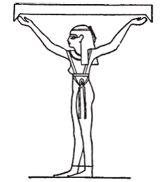 Очень позднее искусство даже пытается превратить это в занавес из бусин или украшение, символизирующее лучи солнца (например, Beneedite. Philae, таблица XLIII); это может выглядеть также как черная табличка, украшенная звездами (Папирус Ани).