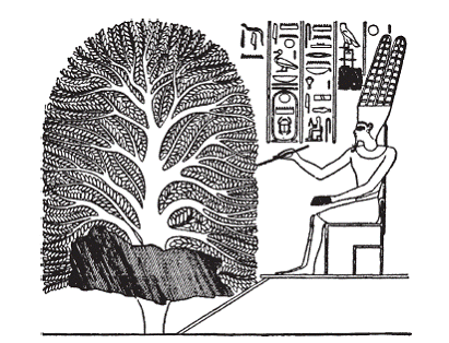 Эта мысль о небесном или космическом дереве или деревьях, которая встречается у многих народов, также предполагает идею древа жизни, плоды которого, считалось в Египте, как и везде, сохраняют вечную юность и мудрость в богах и избранных душах умерших. Древо судьбы, листья или плоды которого символизируют события или жизни людей, представляет ту же самую мысль: прошлое, как и будущее, записано в звездах. Осириса, как бога неба, часто отождествляют с Небесным древом или с какой-то важной частью его или связывают с его фруктами или цветами. Египетская теология пыталась определить земной аналог этого дерева и находила его в дереве с самыми раскидистыми в Египте ветвями – сикоморе.