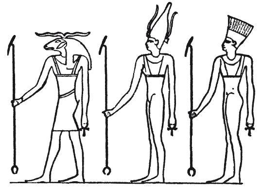Рис 1. Триада из Элефантины: Хнум, Сатис и Анукет